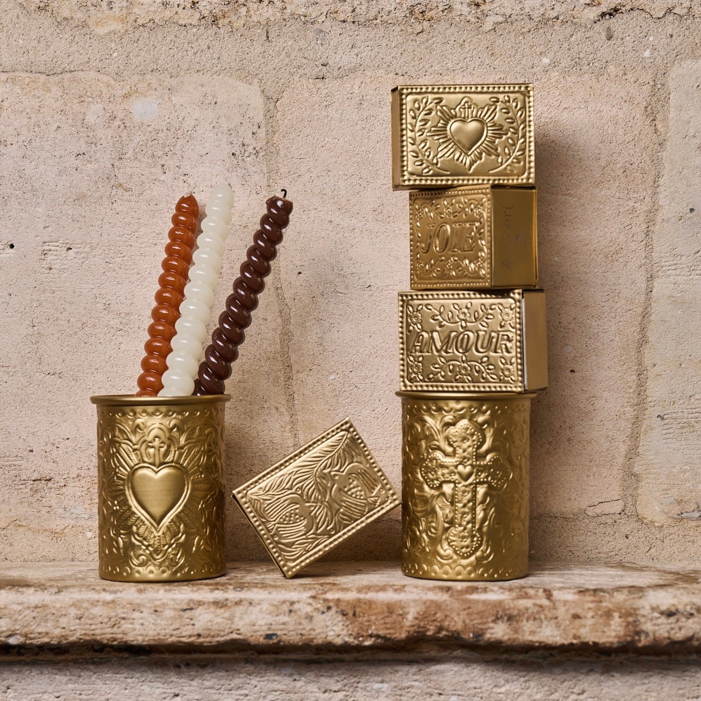 Voici les premiers écrins d’allumettes que vous allez adorer (vous) offrir. Ils deviennent de vrais objets décoratifs à poser à côté de vos bougeoirs. Beauté et noblesse du geste de craquer une allumette et de les tirer d’un écrin doré !