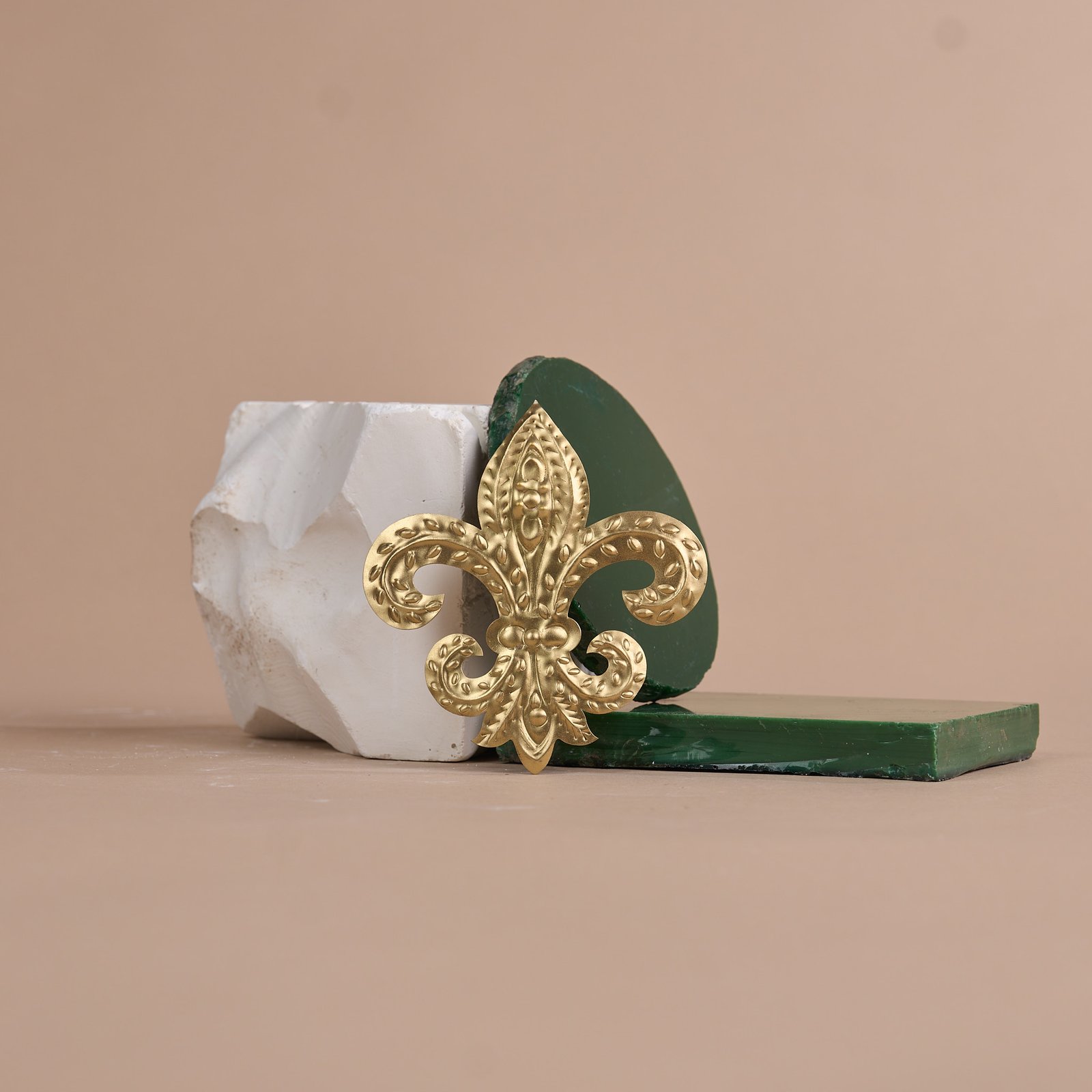 La fleur de lys est le symbole de la pureté. Nous l’avons dessinée avec beaucoup d’arrondi et remplie de feuillages pour évoquer cette si belle fleur qui pare tant de bouquets.